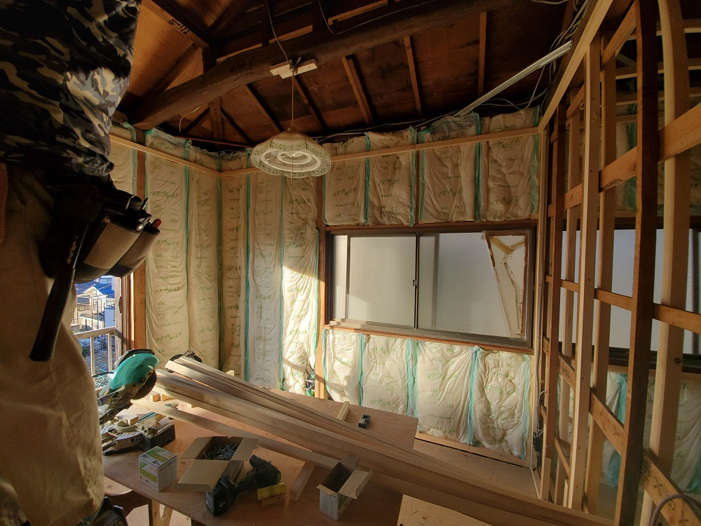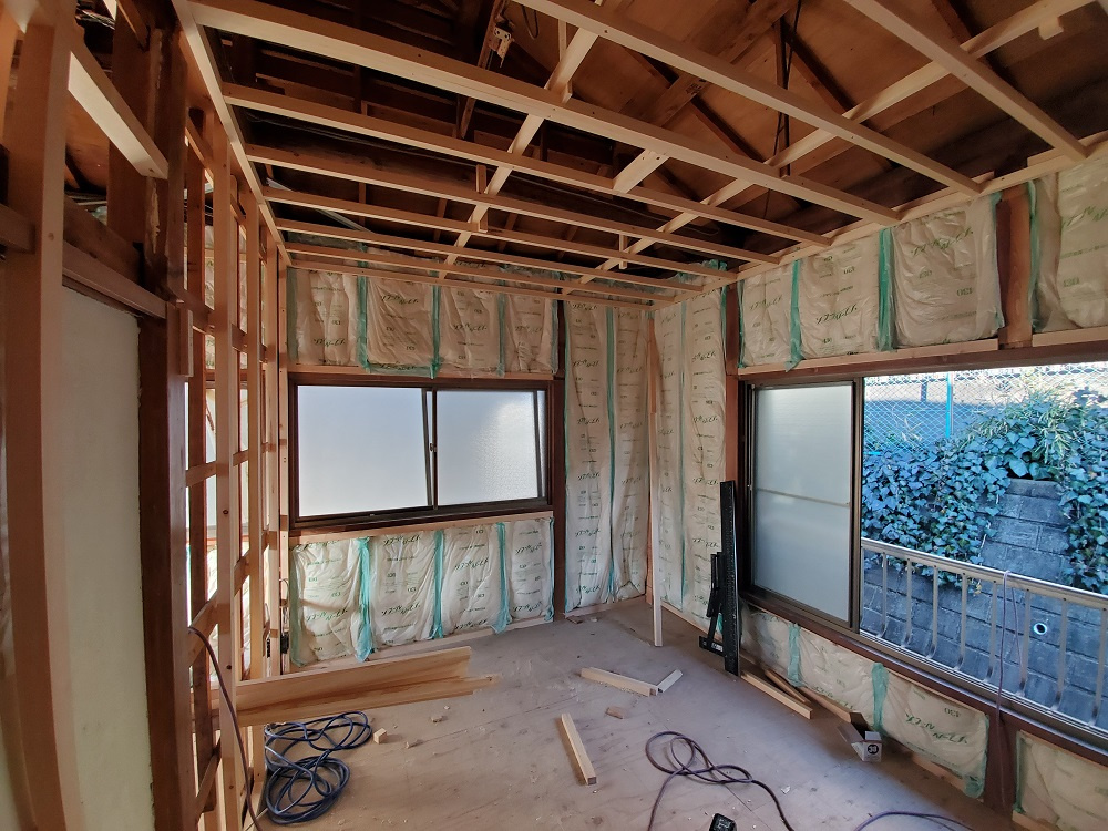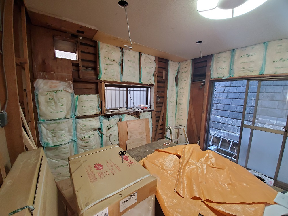 続いては、「断熱工事」です。こちらのお住まいはもともと断熱材が